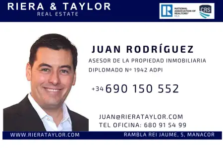 (Mallorca)Juan Rodriguez Agente Inmobiliario en Manacor Tel. 690 150 552 juan@rierataylor.com https://www.rierataylor.com Somos Agentes Inmobiliarios con más de 26 años en Manacor, actualmente somos la empresa más grande de la zona que gestionamos más v